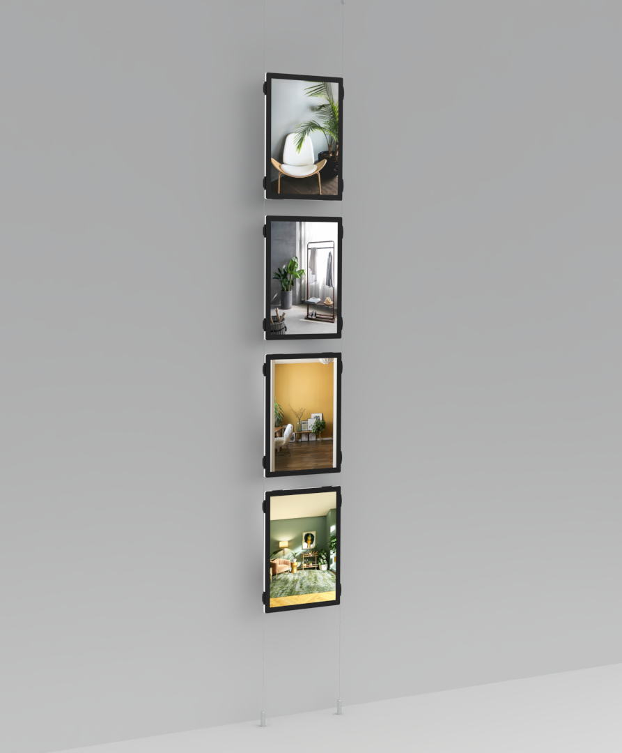 Thanks to another design innovation mounting the pocket to cable is easier than ever. We’ve incorporated four clips into the frame. To mount the pocket simply click the cable into each clip – and that’s it. The panel is lit up, and ready for you to add your graphic. And it almost as easy to change the pocket orientation from portrait to landscape (there a loads of helpful videos on our website) making Claralight a truly versatile and future proof display solution.